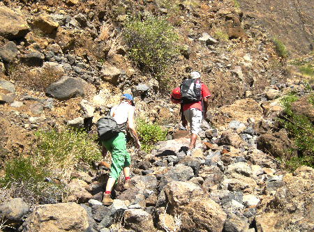 Zunächst wie Wanderung 1, an der Gabelung in der Kraterwand hält man sich rechts, dann geht es noch einmal steil nach oben bis auf 2400 m. Die nächsten Stunden geht man im Bereich zwischen 2400 mund 2700 m bis zum Monte Gomes. Danach folgt der Abstieg nach Fernão Gomes.